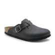 The Birkenstock Boston is a practical classic. Slip them on and you're off! The sophisticated, individual design means the Boston can be worn all year round, giving this style a legendary status for seasonal versatility. Equipped with a strap and buckle that can be adjusted across your instep the Boston clog provides a secure fit. The anatomically shaped footbed and roomy toe box makes them comfortable to wear creating a pleasant environment for the entire foot.