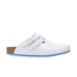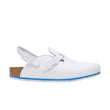 The Kay Pro offers all the advantages of Birkenstock's classic Tokio and Boston models in one. The upper instep strap can be folded back if required, thus providing additional support as a backstrap. The sole is nonslip, promotes the ideal rolling motion, and is also oil- and grease-resistant. The EVA midsole in the leather version has additional soft padding that reliably and permanently cushions the foot with every step - even if your feet are sensitive. This high degree of flexibility and sure-footedness is in great demand in particular in medical environments.