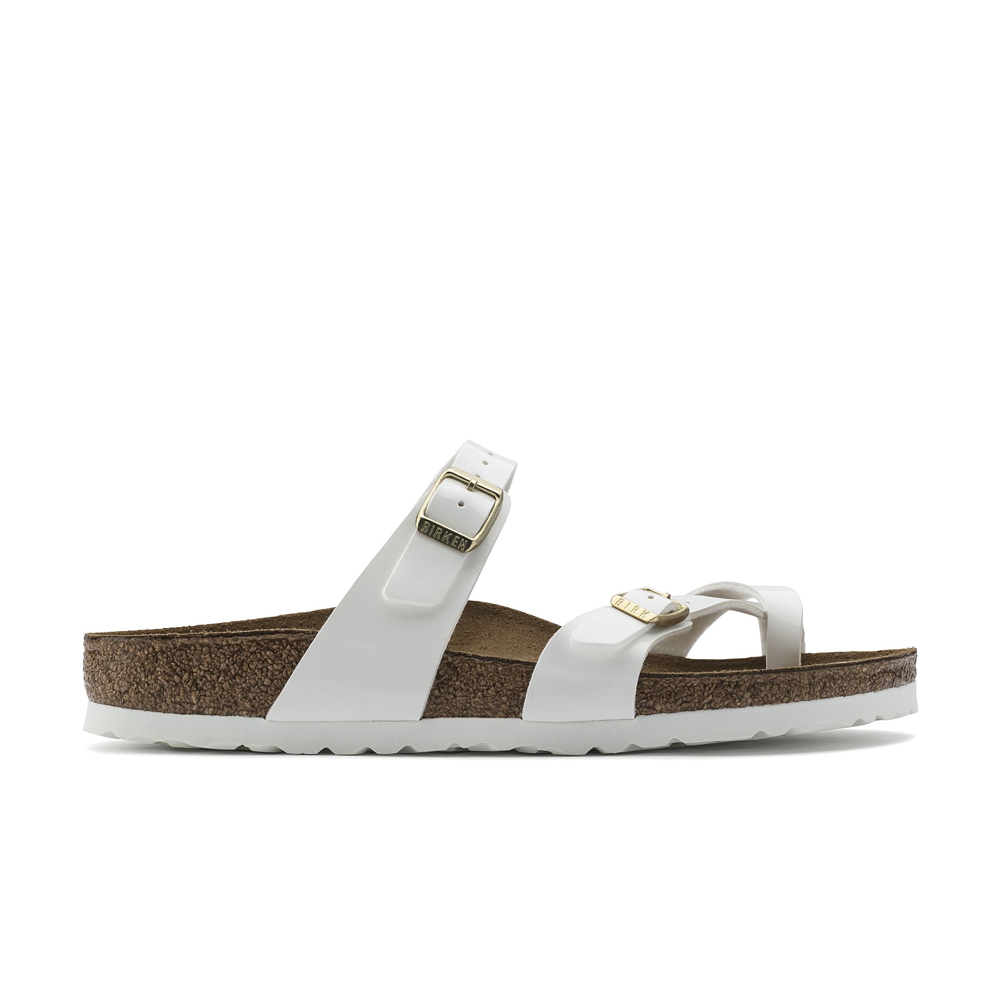 The Birkenstock Mayari thong sandal is a distinctive classic model with a toe loop and cross strap. The combination of anatomically shaped footbed and secure adjustable instep strap makes Mayari extremely wearable in a wide range of situations. Classic support and adjustability, designed beautifully.