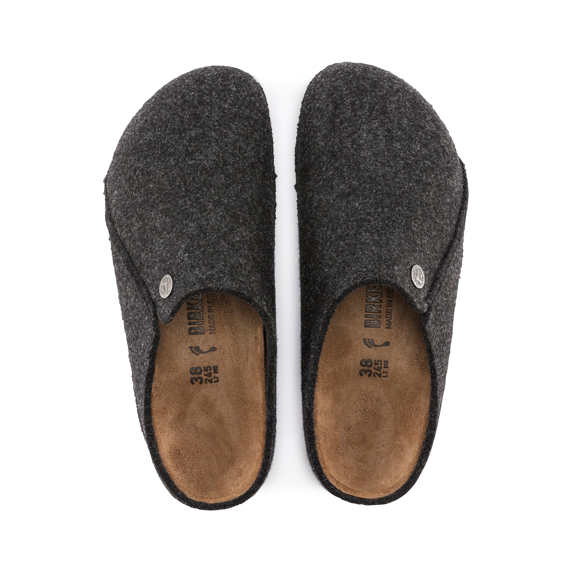 The Birkenstock Zermatt is our first true slipper. This style features our iconic cork latex footbed, and an upper of soft genuine wool to keep you extra cosy.